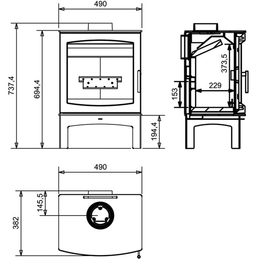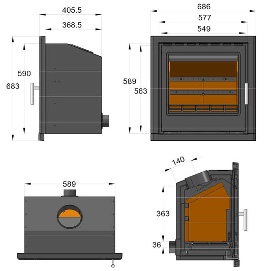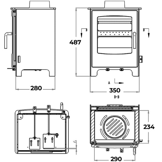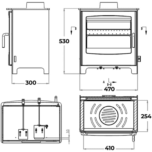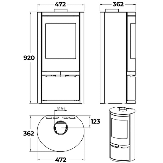 A generous ceramic-glass viewing panel offers an uninterrupted view of the flames, while an advanced air-wash system continually clears soot and deposits for a crystal-clear fire glow. Inside, a lined firebox and clean-burn technology maximise combustion efficiency—whether you choose seasoned wood or solid fuels—so you enjoy longer burn times, lower emissions, and optimal heat output.